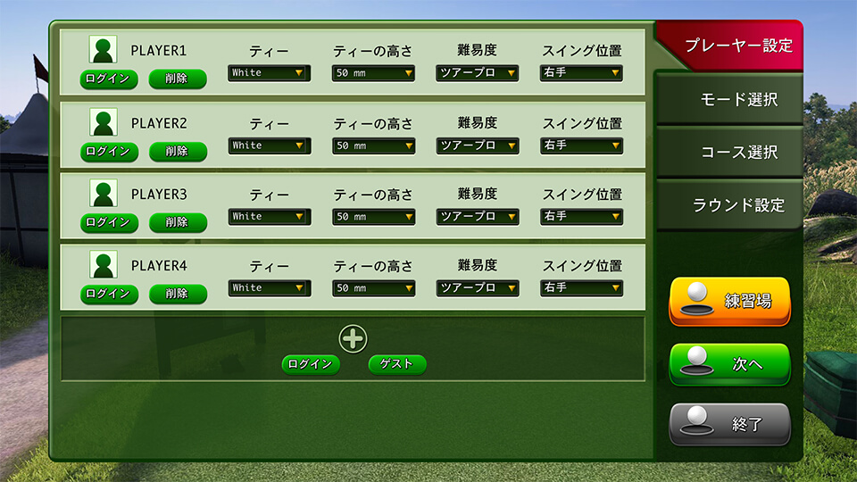 実際のコースでラウンドするのと同じ感覚でプレイしていただけます。