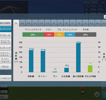収録されているコース内でプレイヤーが自由に打つ場所が選べるフィールドトレーニングも搭載しており、苦手な部分の反復練習が可能です。